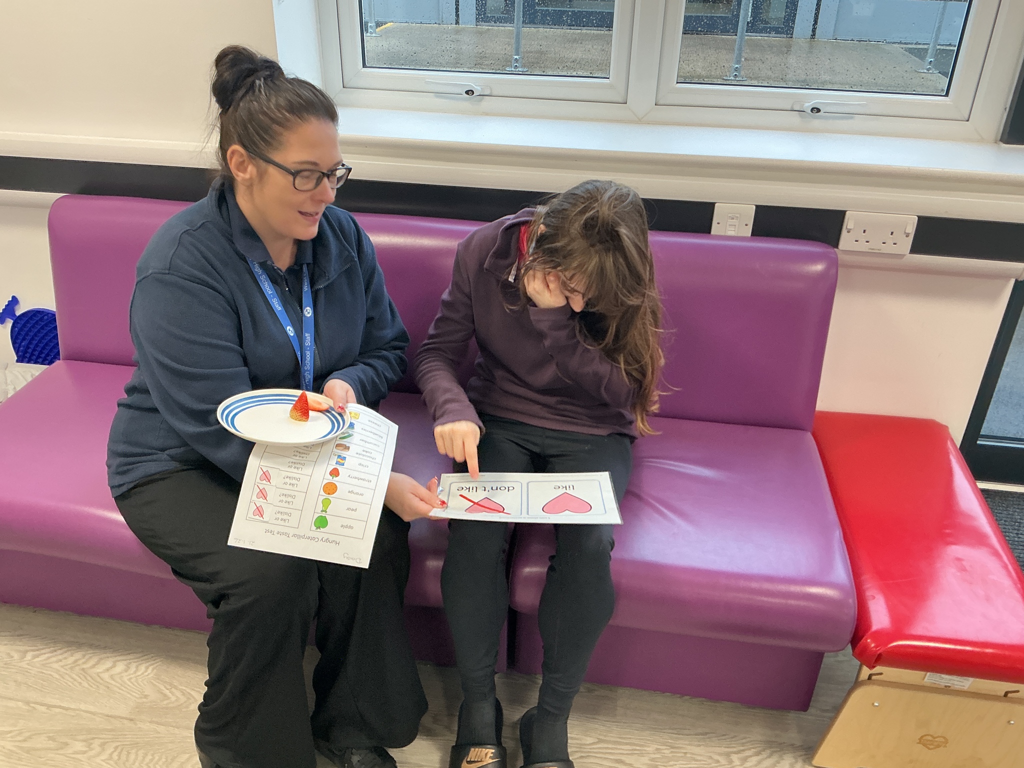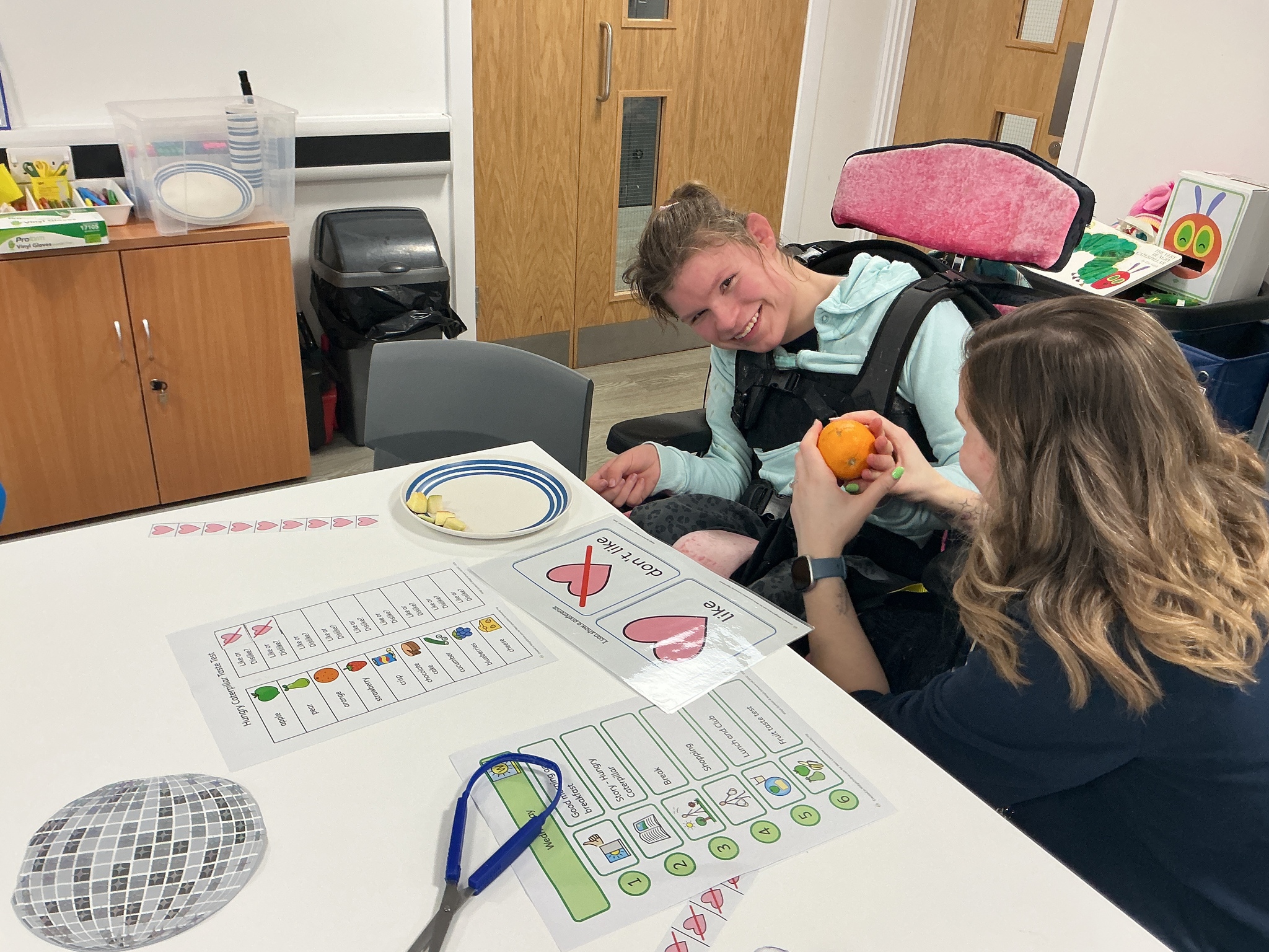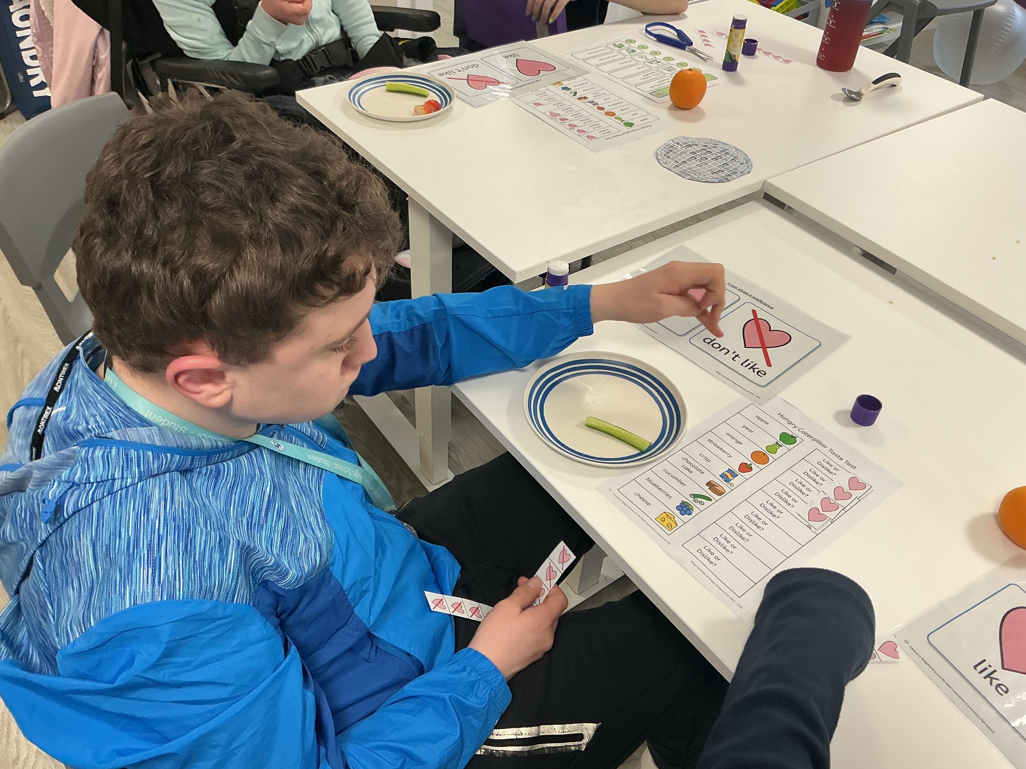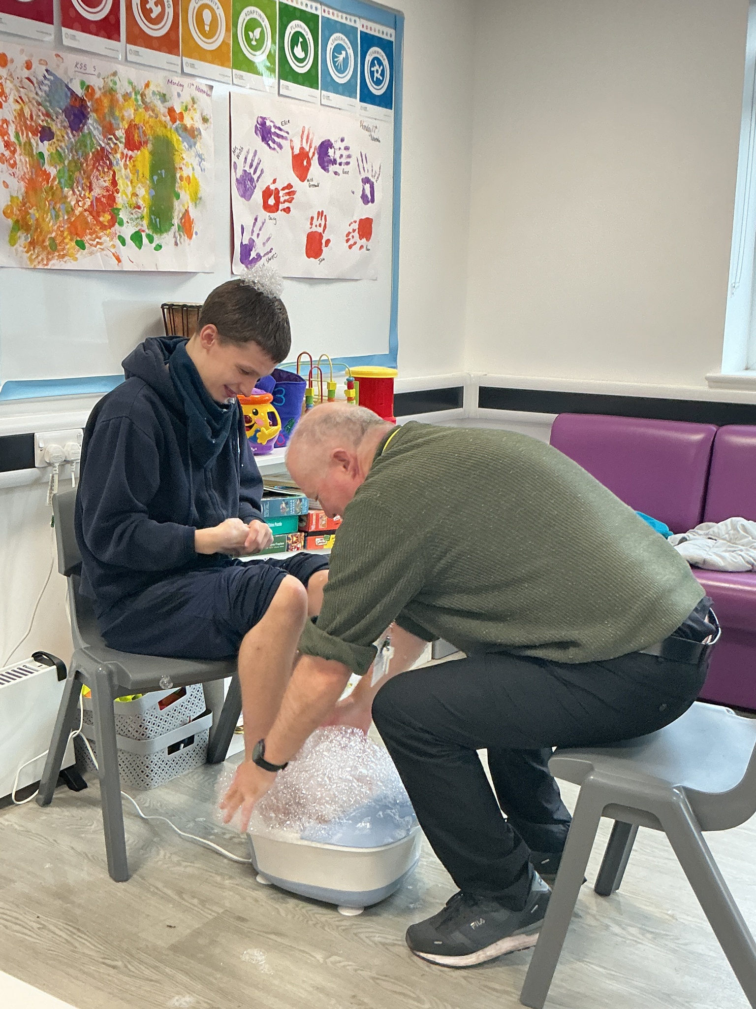 Last week KS5S had a very fun week, we started the week with a sensory exploration session. We looked at different foods and explored them with our hands, we used communication boards to signal whether we liked the feel or not. The next day we went to the supermarket to buy foods from the hungry caterpillar, we used a visual shopping list to find the things we needed and then we took turns to scan the shopping. In the afternoon we taste tested the foods, some were a hit and others were not! Finally, we finished our week with a PSHE lesson where we looked at different ways that we can look after ourselves. We brushed our hair, had a foot spa and enjoyed a drink and biscuit with friends. What a lovely week!