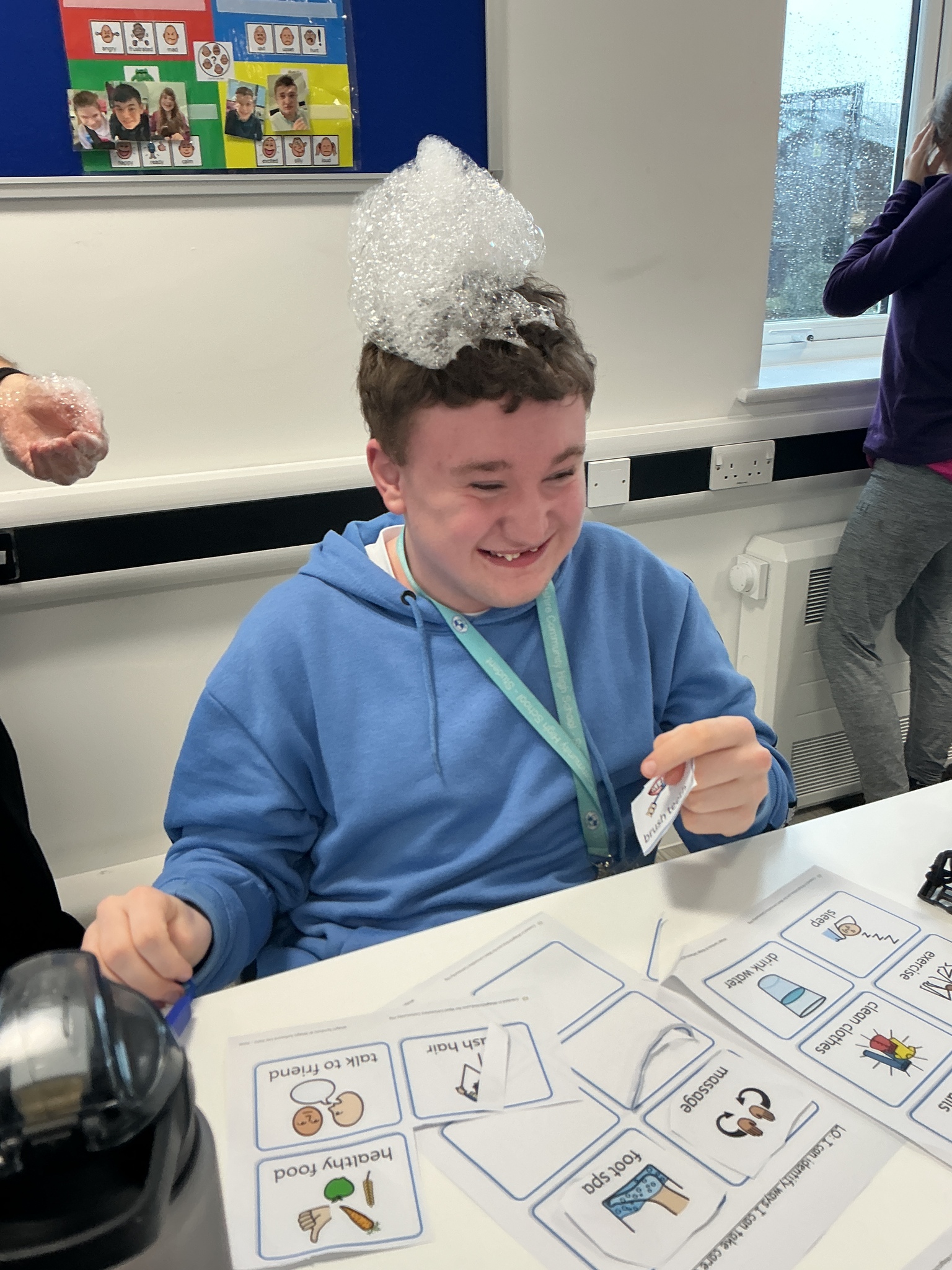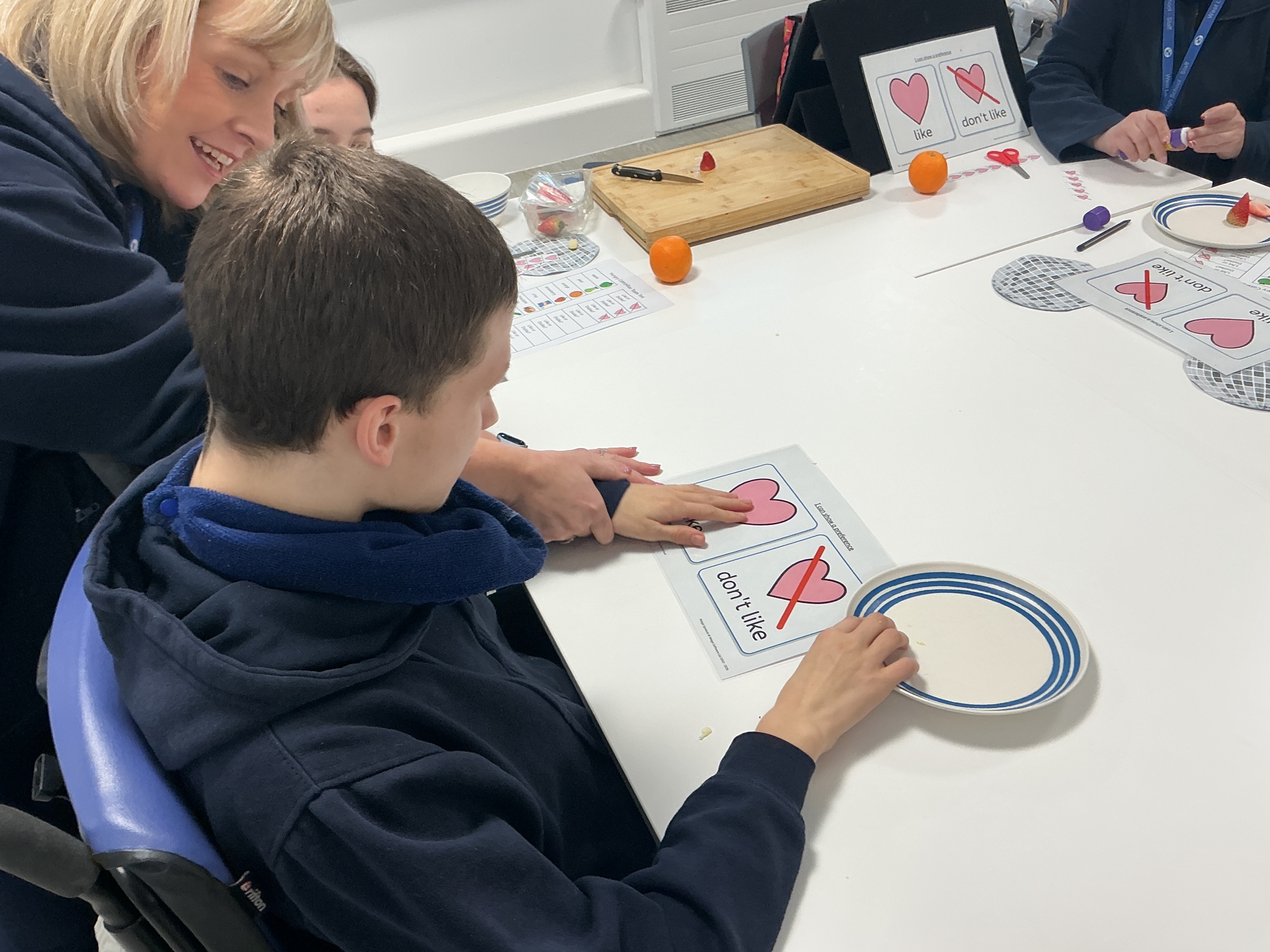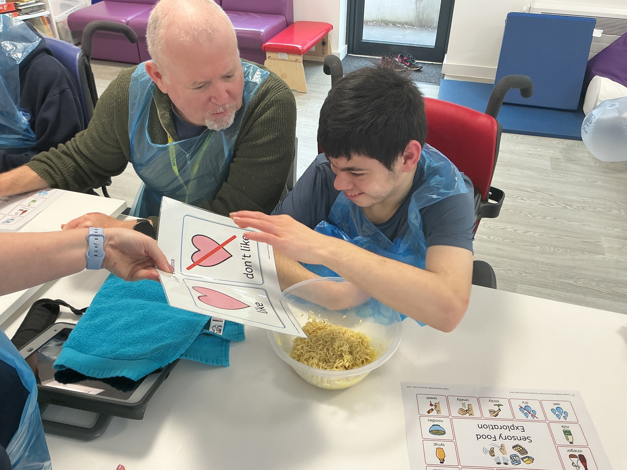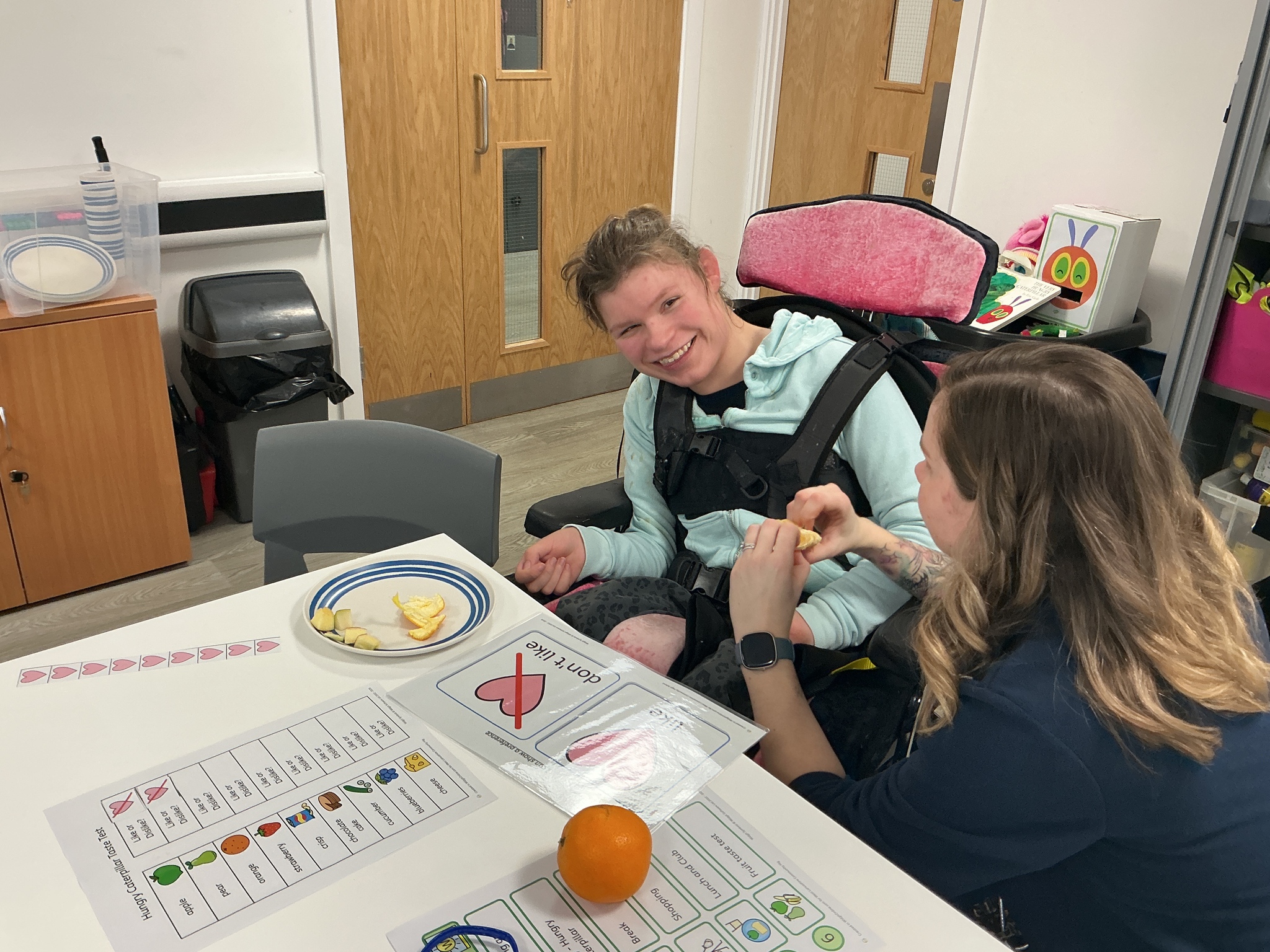 Last week KS5S had a very fun week, we started the week with a sensory exploration session. We looked at different foods and explored them with our hands, we used communication boards to signal whether we liked the feel or not. The next day we went to the supermarket to buy foods from the hungry caterpillar, we used a visual shopping list to find the things we needed and then we took turns to scan the shopping. In the afternoon we taste tested the foods, some were a hit and others were not! Finally, we finished our week with a PSHE lesson where we looked at different ways that we can look after ourselves. We brushed our hair, had a foot spa and enjoyed a drink and biscuit with friends. What a lovely week!