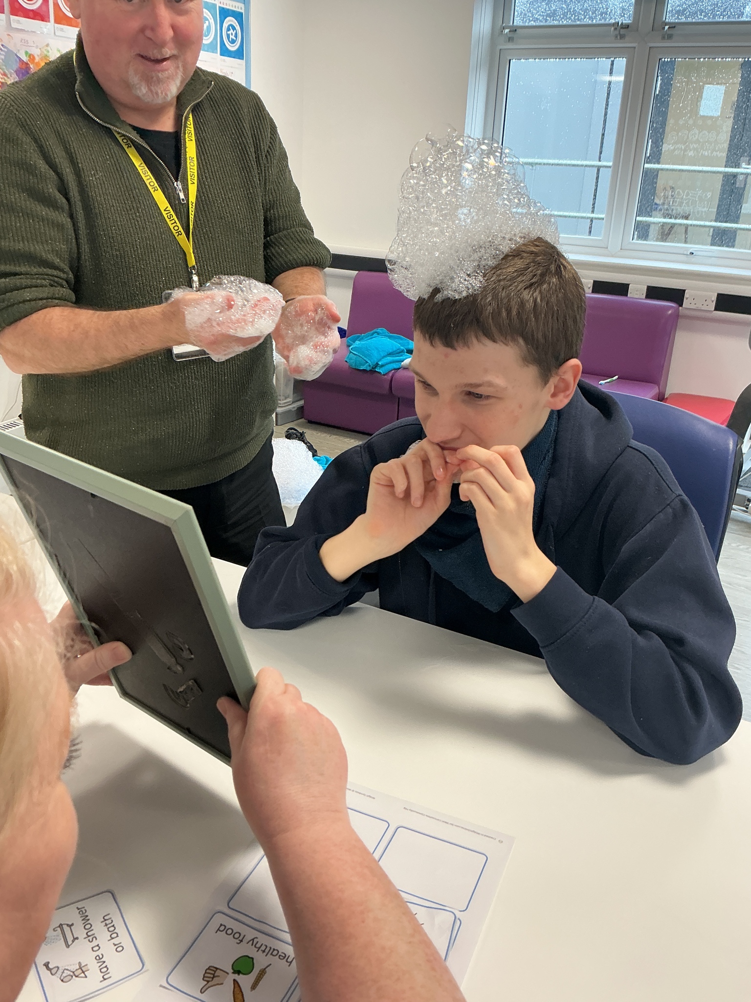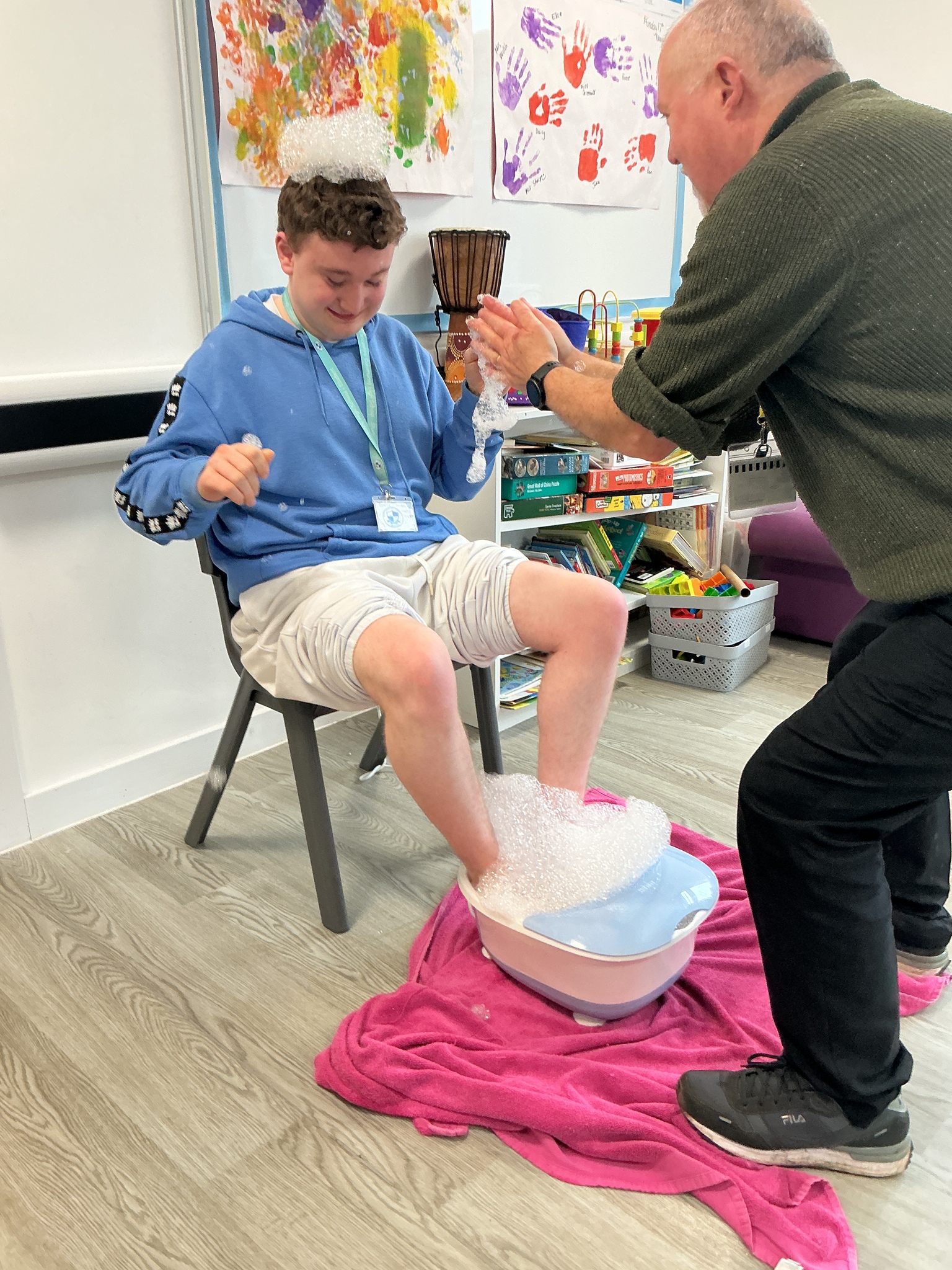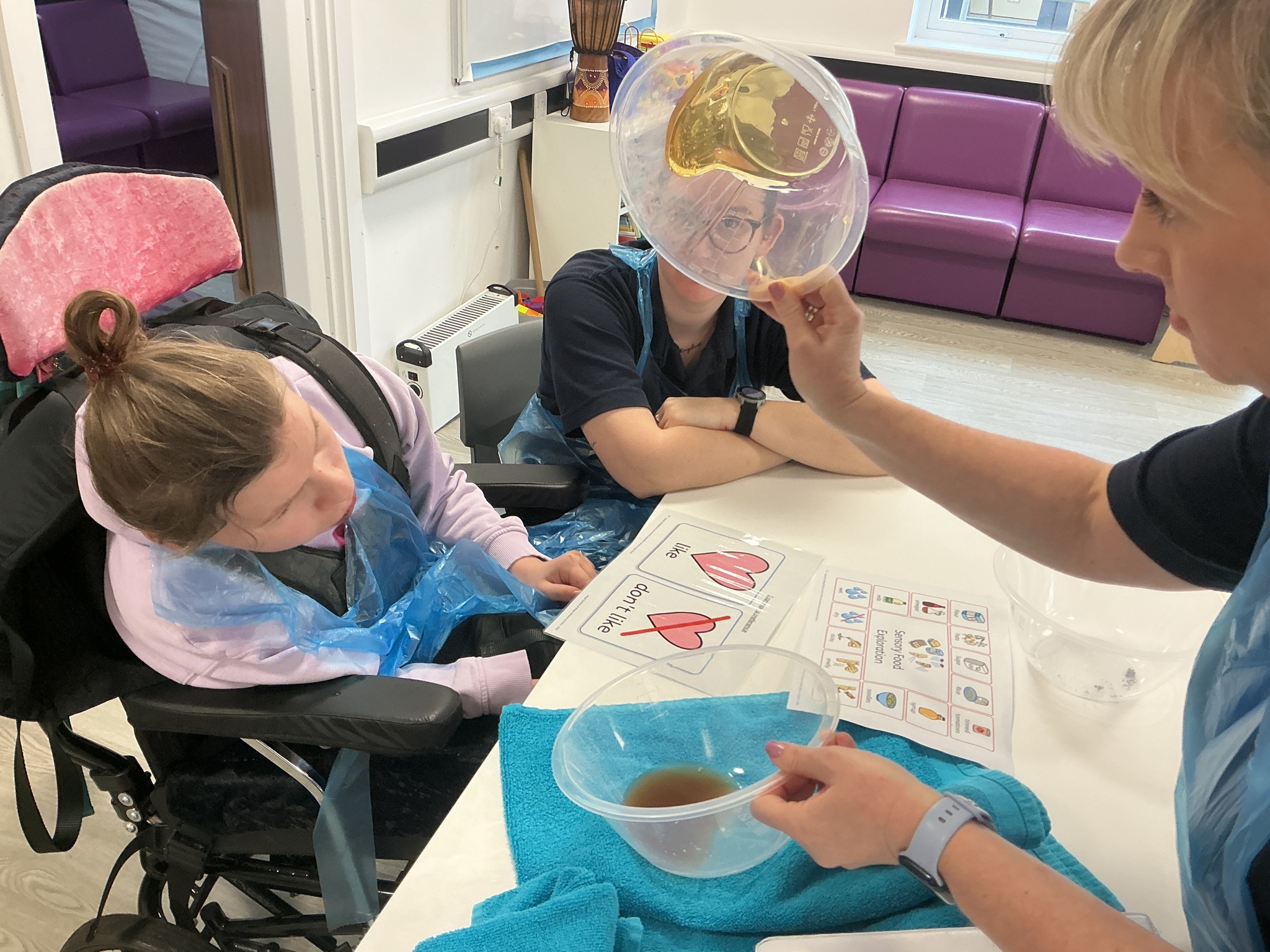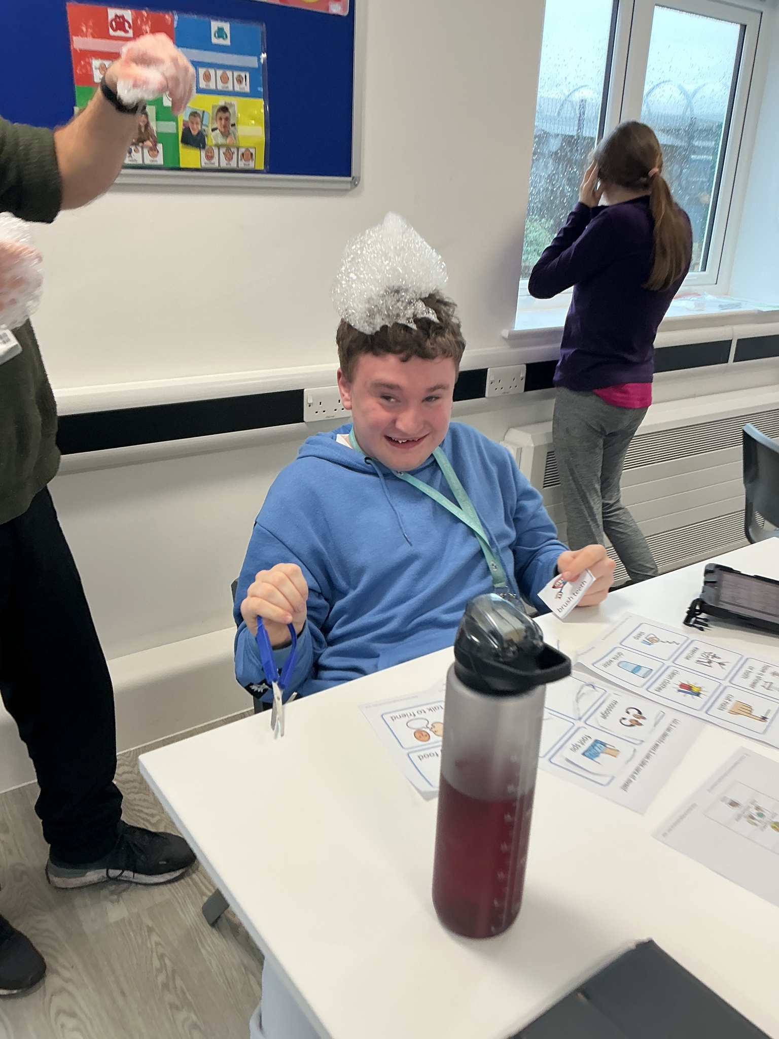 Last week KS5S had a very fun week, we started the week with a sensory exploration session. We looked at different foods and explored them with our hands, we used communication boards to signal whether we liked the feel or not. The next day we went to the supermarket to buy foods from the hungry caterpillar, we used a visual shopping list to find the things we needed and then we took turns to scan the shopping. In the afternoon we taste tested the foods, some were a hit and others were not! Finally, we finished our week with a PSHE lesson where we looked at different ways that we can look after ourselves. We brushed our hair, had a foot spa and enjoyed a drink and biscuit with friends. What a lovely week!