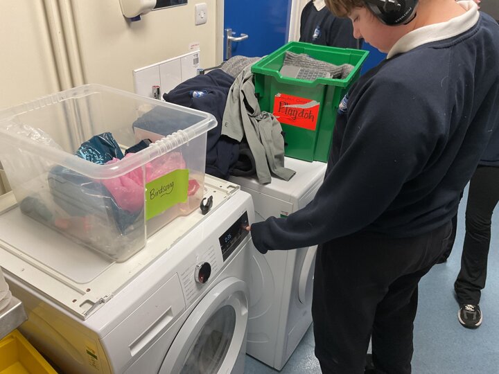 - Learning how to put clothes in the washing machine